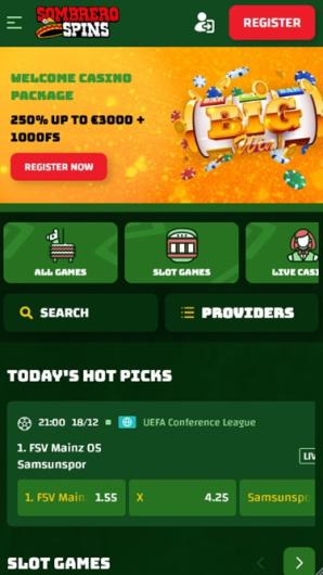 SombreroSpins propose également de nombreux marchés de paris pour chaque événement, offrant une flexibilité avec des options telles que les écarts de points, les cotes (moneylines) et les paris sur les totaux (over/under). La section des paris sportifs reflète l'esprit dynamique de cette marque et propose des promotions à thème et des cotes occasionnellement augmentées, offrant aux joueurs de nombreuses opportunités d'améliorer leur expérience et de maximiser leurs gains.