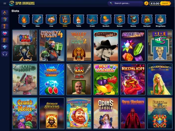 Grâce à un grand nombre de fournisseurs de logiciels de casino en ligne, SpinDragons propose une bibliothèque de jeux vaste et variée qui répond à tous les goûts. Le lobby est esthétique et comporte près d'une douzaine de catégories pour faciliter la navigation. L'outil de recherche permet de filtrer le contenu par fournisseur, mais il pourrait certainement être amélioré en ce qui concerne l'affichage des résultats.