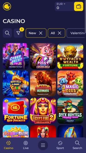 Machines à Sous : Pink Joker, Fruit Million, Egypt Fire 2, Bonanza Billion, Gold Rush Johnny Cash, Blast the Bass, Big Wild Buffalo, Disco Party, Book of Flames, Hold My Beer, Wanted Dead or a Wild, Star Clusters, Midas Golden Touch 2, Luck of Tiger Bonus Combo, Candyland Jackpots, Majestic Wild Buffalo, Legend of Cleopatra Megaways, Wild Bandito, Anubis Wrath, Valley of the Gods, et bien d'autres encore.
