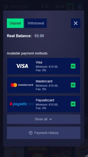 Différentes méthodes de paiement sont disponibles dans le casino en ligne Sportaza. Les monnaies fiduciaires pour les joueurs traditionnels, les portefeuilles électroniques et les cryptomonnaies pour les plus modernes. Les joueurs qui souhaitent opter pour les cartes de crédit doivent savoir qu'ils peuvent déposer via Master et VISA mais que, dans certains pays, ils ne peuvent pas effectuer de retrait de la même manière.