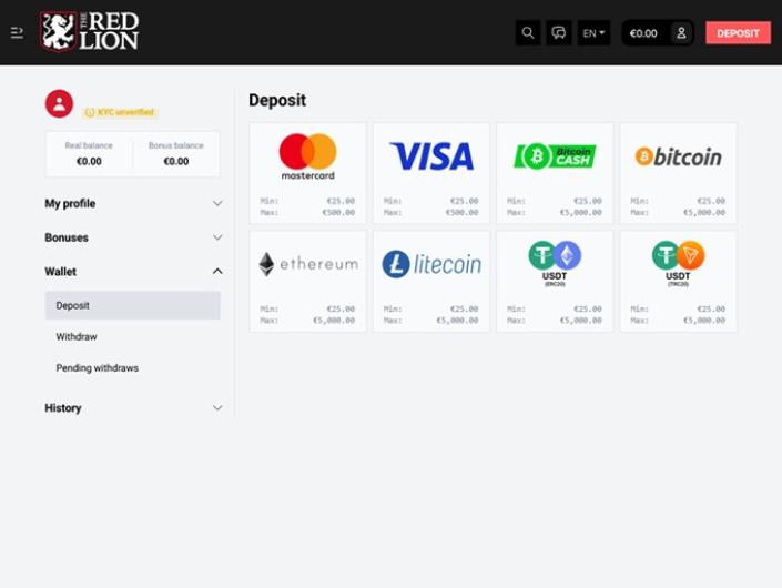 Avant de commencer, il est essentiel de savoir que le casino en ligne The Red Lion opère sans aucune licence, donc gardez cela à l'esprit avant de choisir de jouer ici.