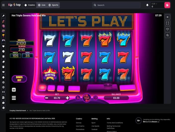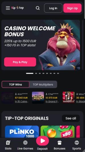 Tip-top.bet est une plateforme de jeu de pointe qui, outre les meilleurs jeux de casino en ligne, propose également une salle de paris sportifs innovante.