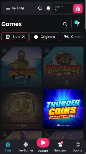 Le lobby de Tip-top.bet est regorge de jeux de première qualité provenant de la crème de la crème des fournisseurs de logiciels. En plus de toutes les machines à sous en ligne possibles et imaginables, les joueurs peuvent profiter d'une excellente sélection de jeux de table en direct et de jeux télévisés qui conviennent à tous les goûts et à toutes les bourses.