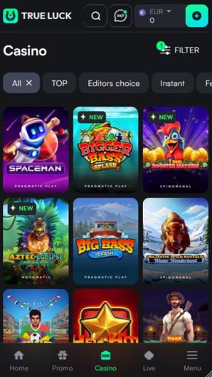 Trueluck dispose d'une bibliothèque très bien organisée regorgeant d'options de jeux provenant des meilleurs éditeurs de logiciels de casino en ligne. Le site offre à peu près tout ce qu'un établissement iGaming qui se respecte devrait proposer, et même plus.