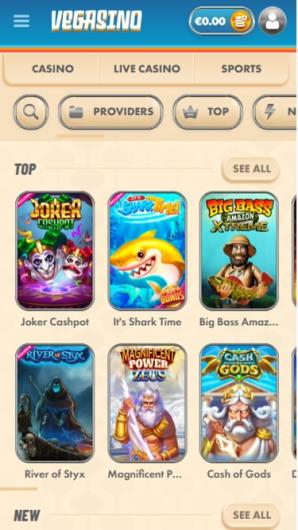 Vegasino Casino est classé 193 sur 395 casinos passés en revue avec une note de 2.9 sur 5 après 7 votes et il a6150 machines à sous proposées par 1x2gaming, Amatic Industries, Ash Gaming et 143 autres avec une note moyenne de 3.9 sur 5 après 183837 votes.