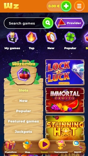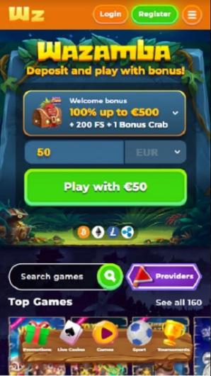 ...Wazamba ne fait pas exception à la règle. L'ensemble de la page est bien organisé en sections, tout comme sa version pour ordinateur. Il fonctionne sans problème majeur sur tous les types de systèmes d'exploitation et d'appareils mobiles.