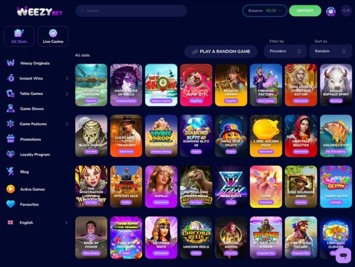 WeezyBet.com dispose d'une impressionnante bibliothèque de jeux remplie à ras bord de titres populaires fournis par certains des développeurs de logiciels iGaming les plus connus.
