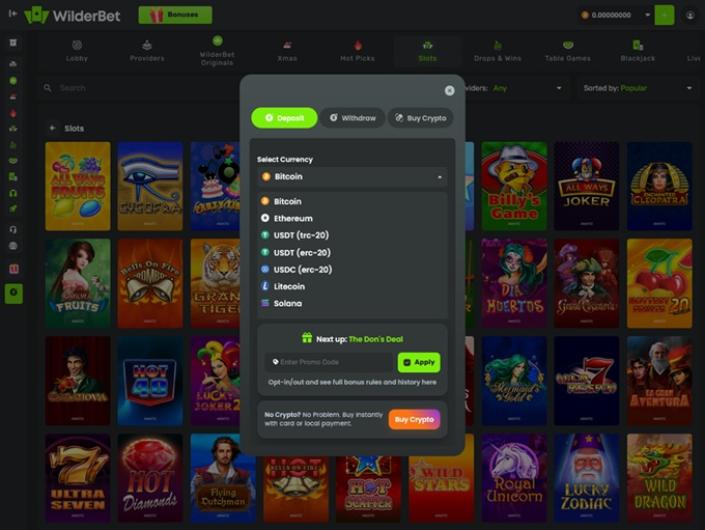 Acceptant toutes les cryptomonnaies populaires et les plus fréquemment utilisées, le Casino WilderBet est l'endroit idéal pour tous ceux qui souhaitent bénéficier de paiements rapides, sans tracas et, surtout, à faible coût.