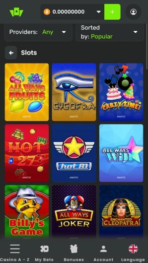 Quels que soient vos goûts en matière de jeux de casino en ligne, WilderBet a ce qu'il vous faut. De tous les types de machines à sous possibles et imaginables à de nombreuses variantes intéressantes de roulette, blackjack, baccara et poker en direct et RNG. Le lobby propose également une excellente sélection de vidéo poker et de crash games au rythme effréné.