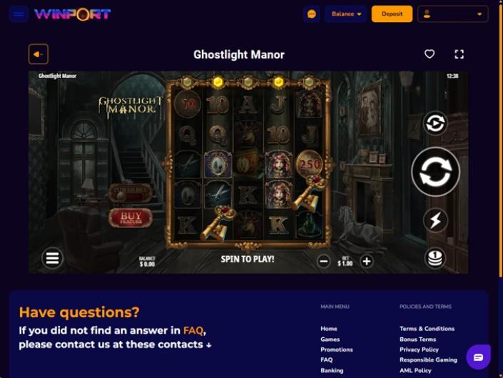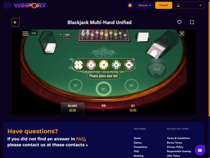 Une connexion internet stable, un endroit confortable pour soulager vos pieds, et la fête du casino peut commencer ! Il n'y a pas d'application à télécharger, mais pas de problème - vous pouvez lancer la plateforme du casino WinPort à partir de votre navigateur web.