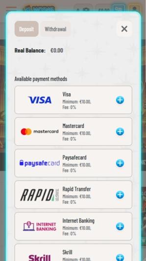 Services bancaires CashtoCode, Interac, MiFinity, Neosurf, NETELLER, Nordea, Paysafecard, Pix, Postepay, Rapid Transfer, Revolut, Siru Mobile, Skrill and Zimpler ne sont pas disponibles pour les Joueurs provenant de Ohio
