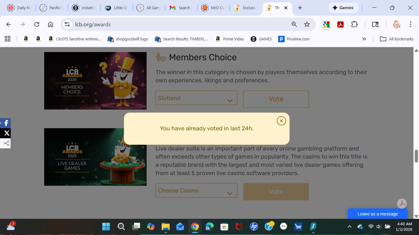 CLÔTURÉ : Concours LCB Awards 2025 de 6 000 $ : Votez pour le meilleur jeu en ligne !