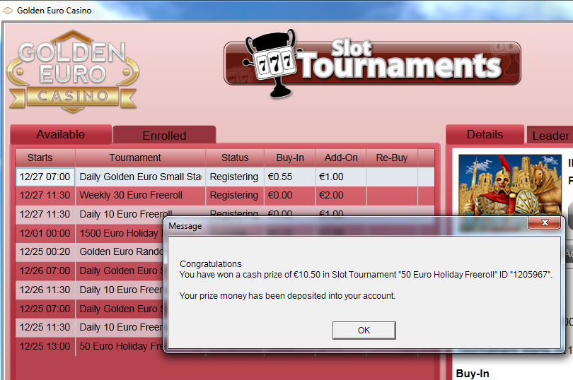 Maximum players: 1800Golden Euro Casino - Freeroll de décembre