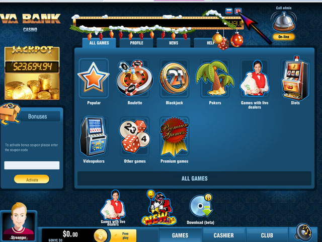 Va-Bank on its website only uses its own development, and the collection and variety of these games is impressive. All games are divided into 8 categories: popular, roulette, blackjack, poker, slot machines, video poker game with live dealers and table games. More than 100 original games. And initially offered to practice their skills in the mode of virtual money, which is available for all games (except of course the same games with live dealers). In the game you can play online as the flash version and a special downloadable client.