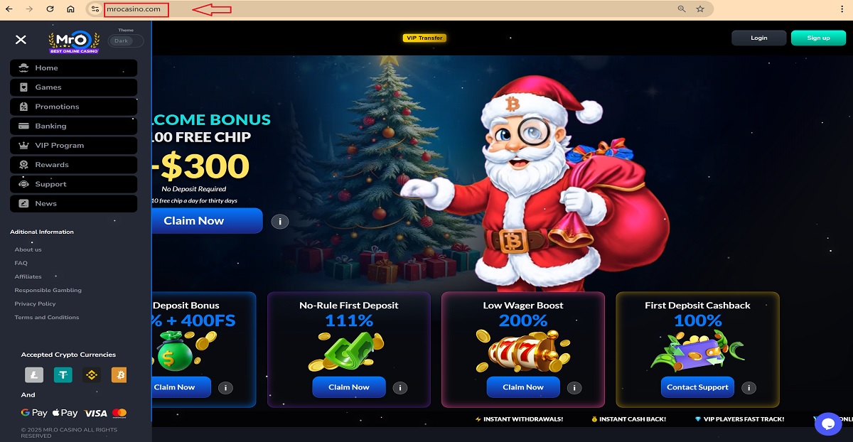 Site web légitime du casino : Page d'accueil du casino MrO