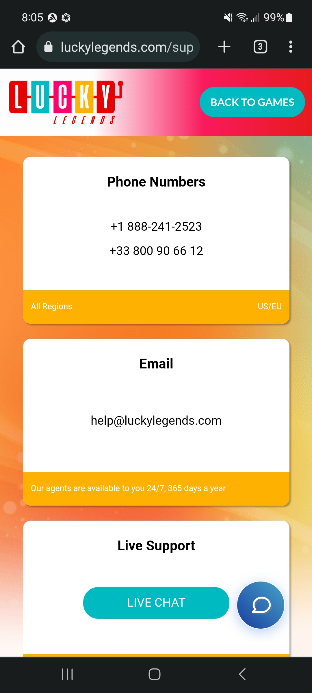 We don't recommend this brand as it does not have a gaming license and there were lots of players' complaints. Please proceed with caution when playing at Lucky Legends Casino.