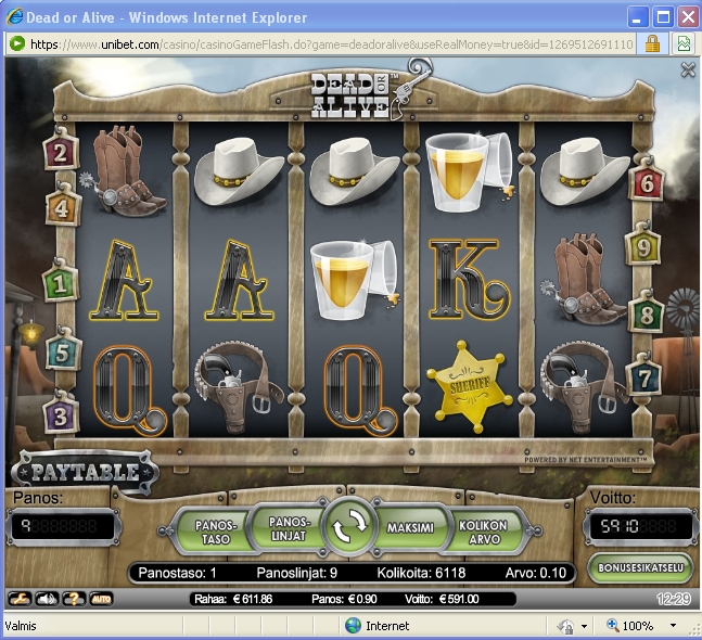 Edit: Sorry for the finnish language in the game. But the winning was 591eur and no bonuses involved.Sur Unibet.. Machine à sous Dead Or Alive pari de 0,90eur. J'ai obtenu les 12 tours gratuits 2x multiplicateur + 5 sticky wilds + 5 tours gratuits en plus.