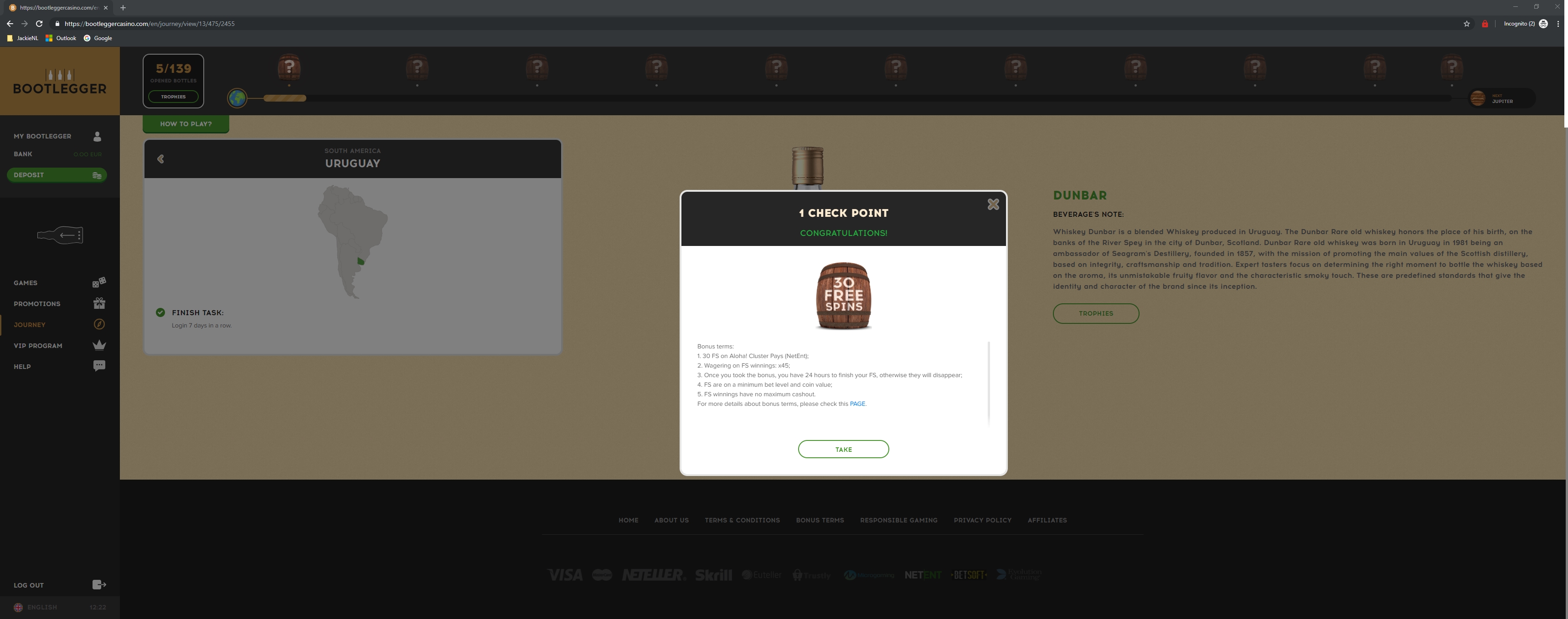 I've registered as new player at Bootlegger Casino