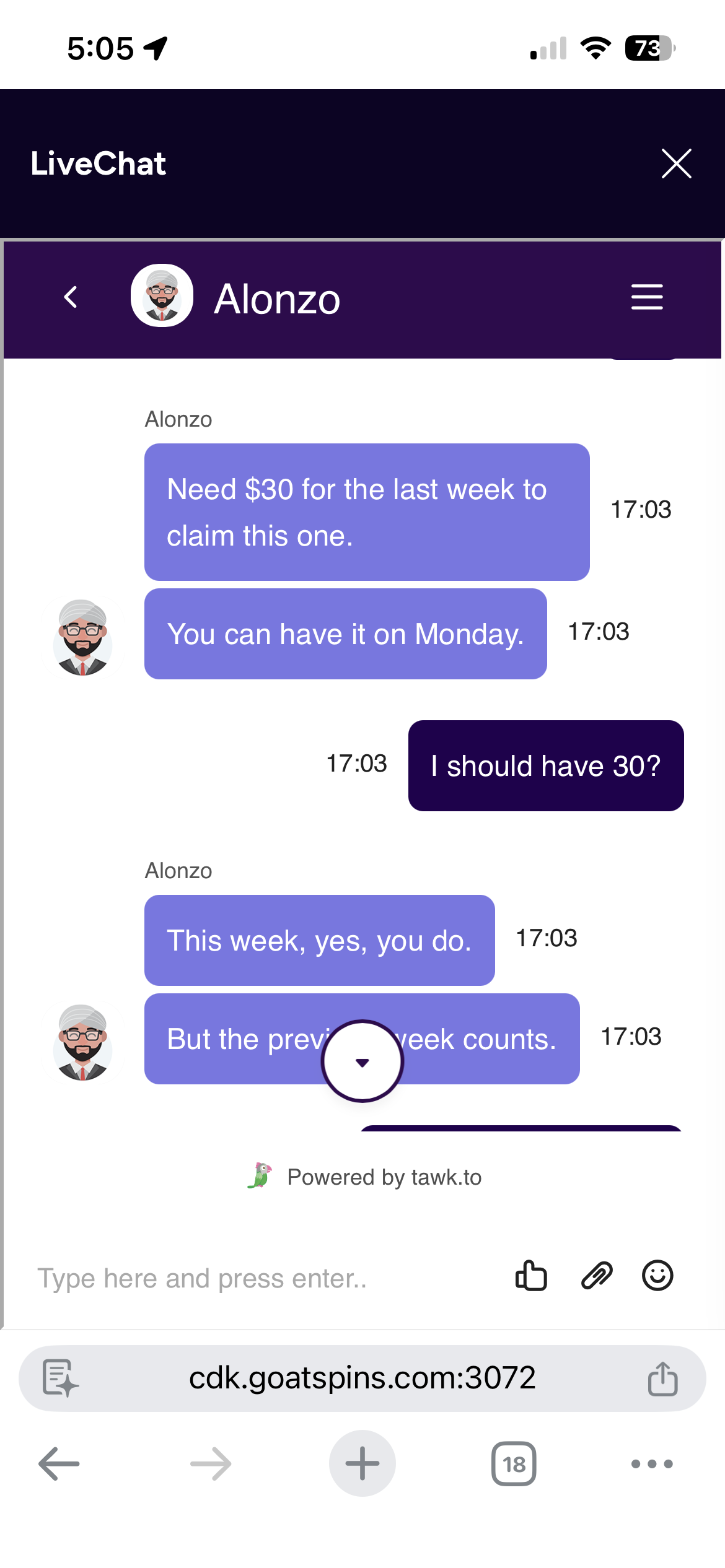 I tried to claim LCBCOZY and the guy said LAST week I didn't have 30 in deposit this week I did but I can't claim it??