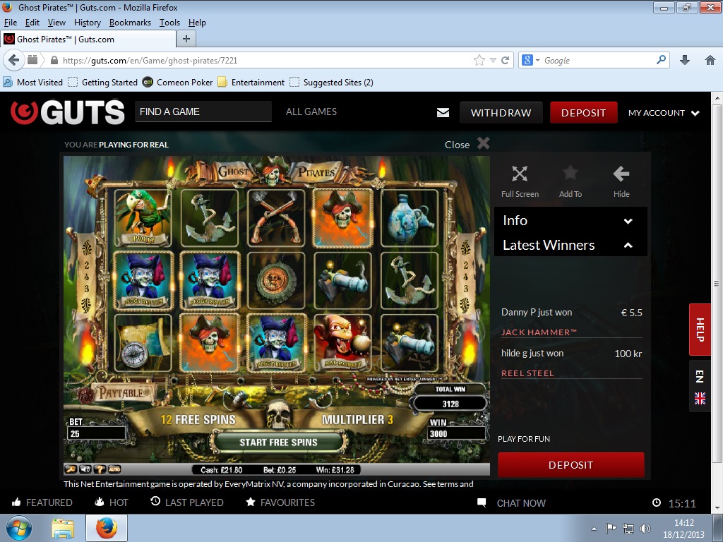 Great free spins win on Ghost Pirates following a decent flurry from Dead or alive,trolls and thunderfist! £57.89 for free! gotta love guts!