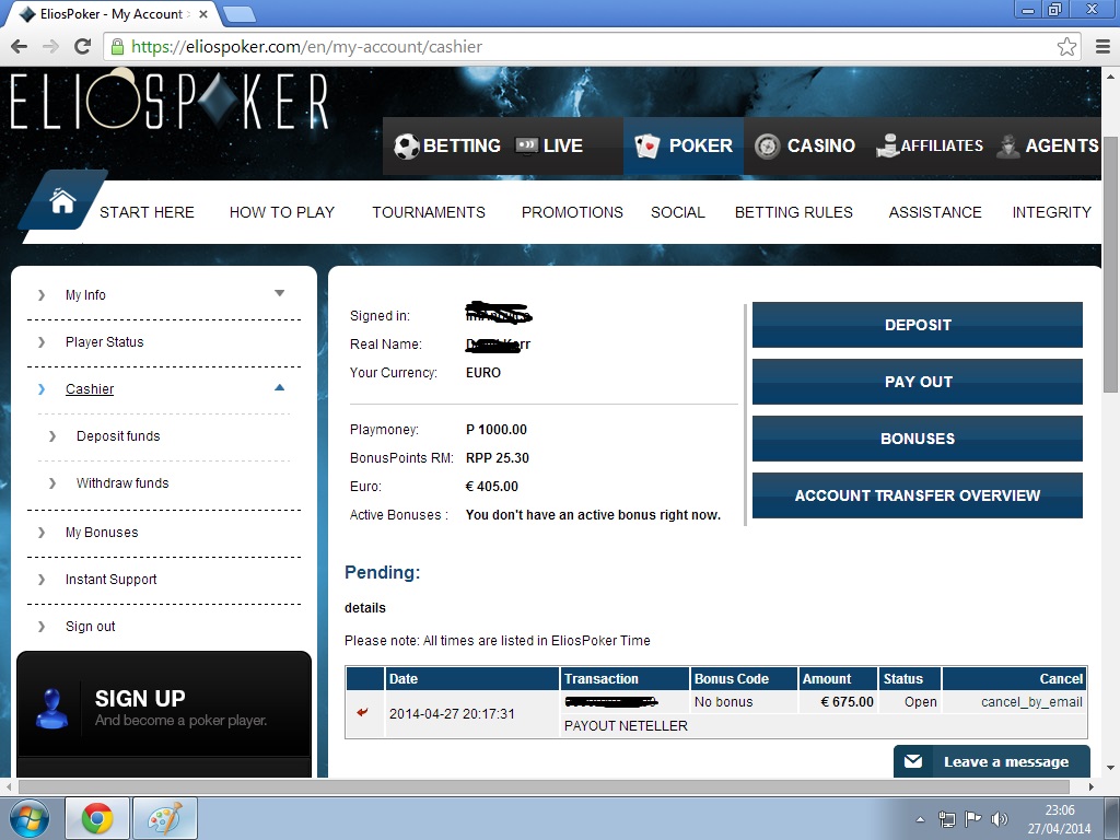 Elios cancelled my withdrawal but I am glad they did because I just milked them a bit more! Now I have €1,080 from that free €2 simply mindblowing! I decided to be smart and transferred €120 to my casino and withdrew the rest to account again. Here's some highlights of my night!