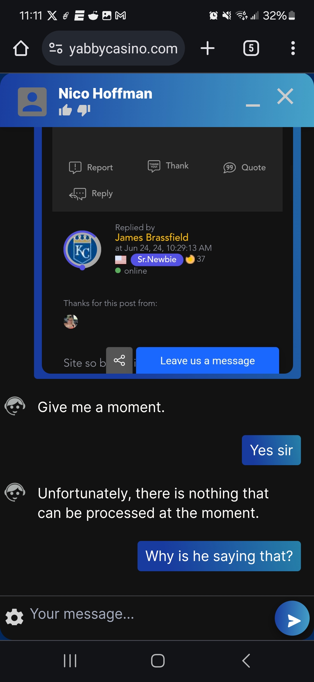 Thank you for your understanding and good luck playing at Yabby Casino!Kind Regards,