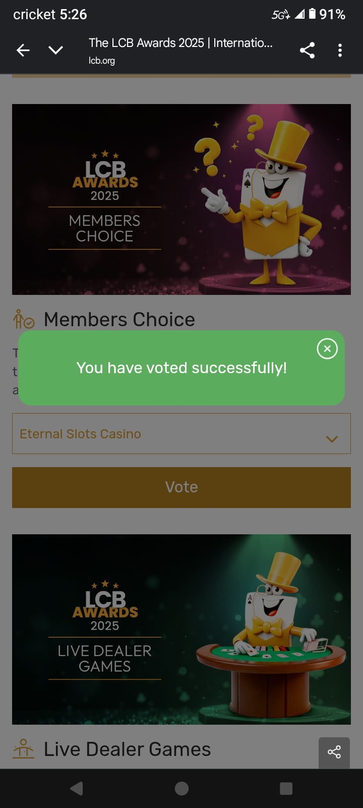 If you’d like to take part and vote in the LCB Awards 2025 $6,000 cash contest, you can find all the details on our LCB Awards page — including how to participate and cast your vote.**Please note** If a casino has promoted free spins or other perks for voting, please reach out to the casino directly to claim the offer. We recommend taking a screenshot of your member name on this voting page as proof. LCB is not connected to any LCB Awards-related promotions offered by casinos themselves.