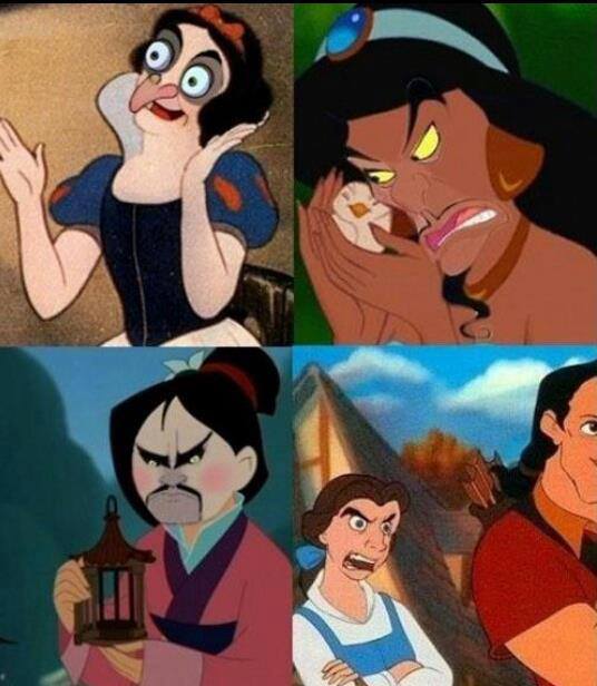 Those are funny face swaps. Snow White's my favorite.