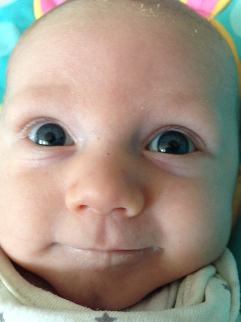 Oh my dear, dear goodness right when i think there is no way on earth he can get any cuter he turns around and gets more adorable as time goes by! His blue eyes are as big as buttons and those cheeks look like they are storing chestnuts!