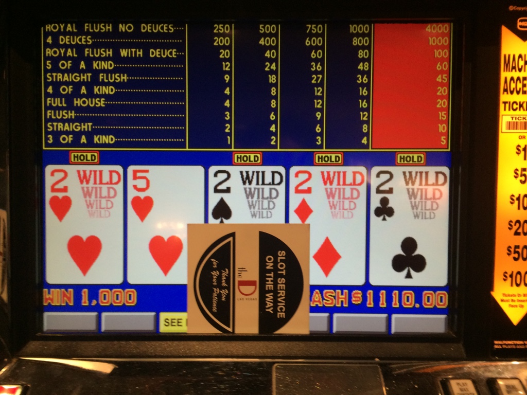 The D- fairly new Casino did a wonderful job with renovating and reinventing the old Freemont Street Casino. They have many 100+ % payout video poker machines and they are even so kind as to explicitly state as much. I hope you've practiced your optimal strategies! Be careful of large bills in the quarter-pumping machines, as you'll end up with a bucket full! Double Bonus or JoB get the job done.