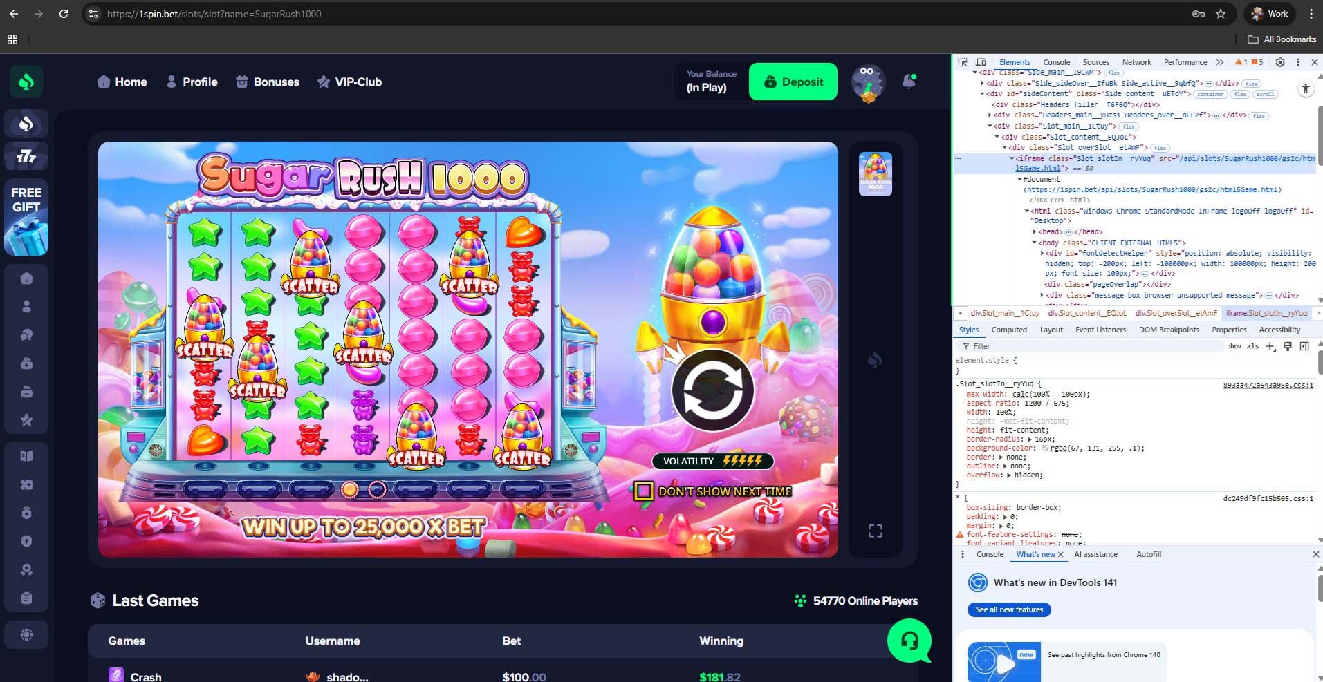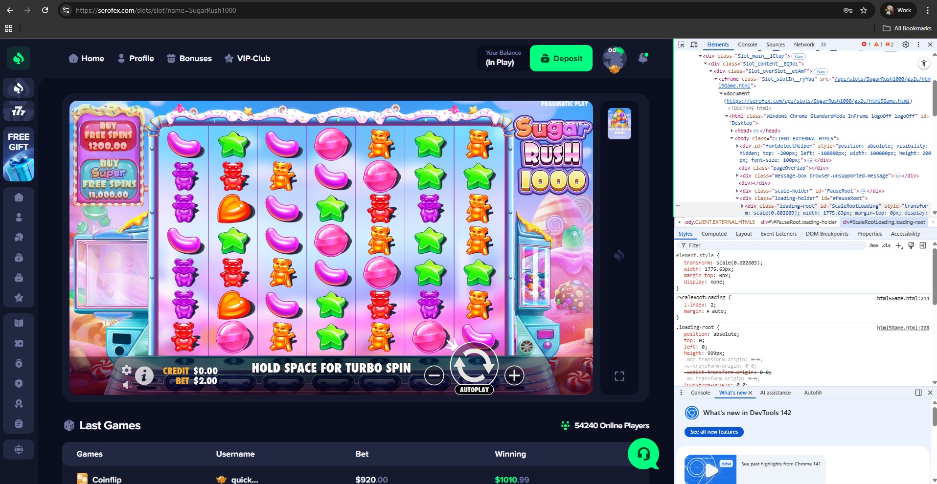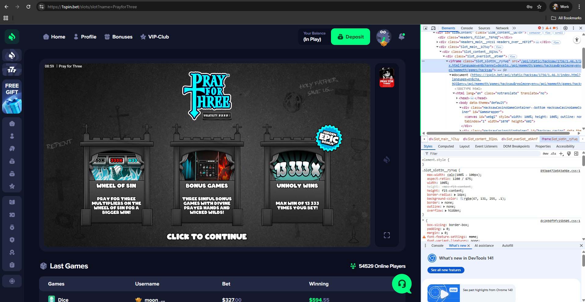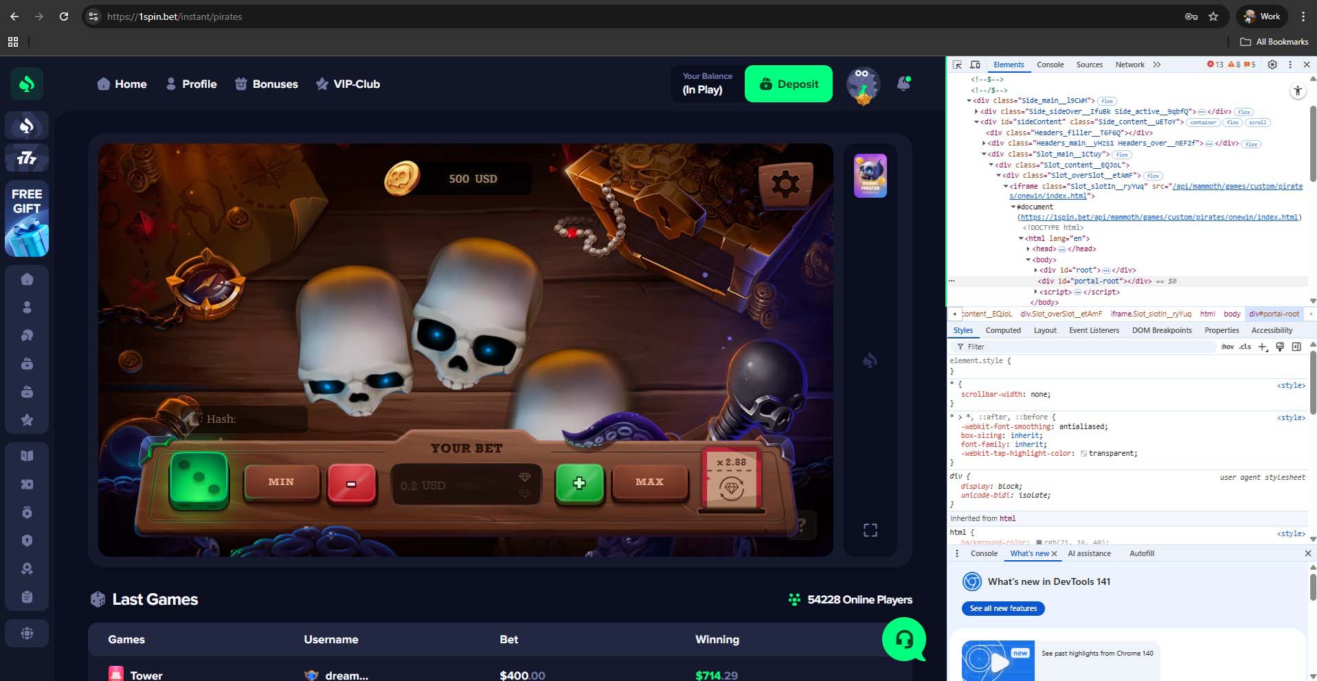 Our investigation revealed that this casino offers fake Pragmatic Play, Hacksaw Gaming, BGAMING, Evoplay, and 1win.