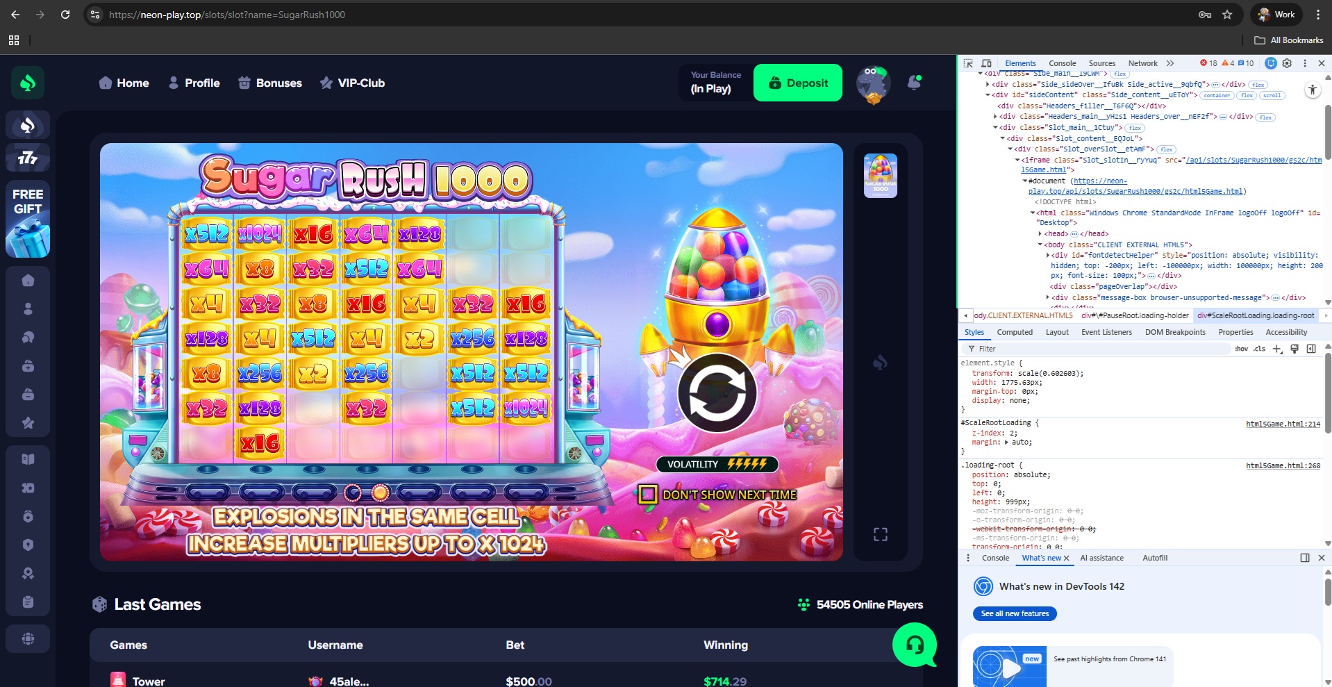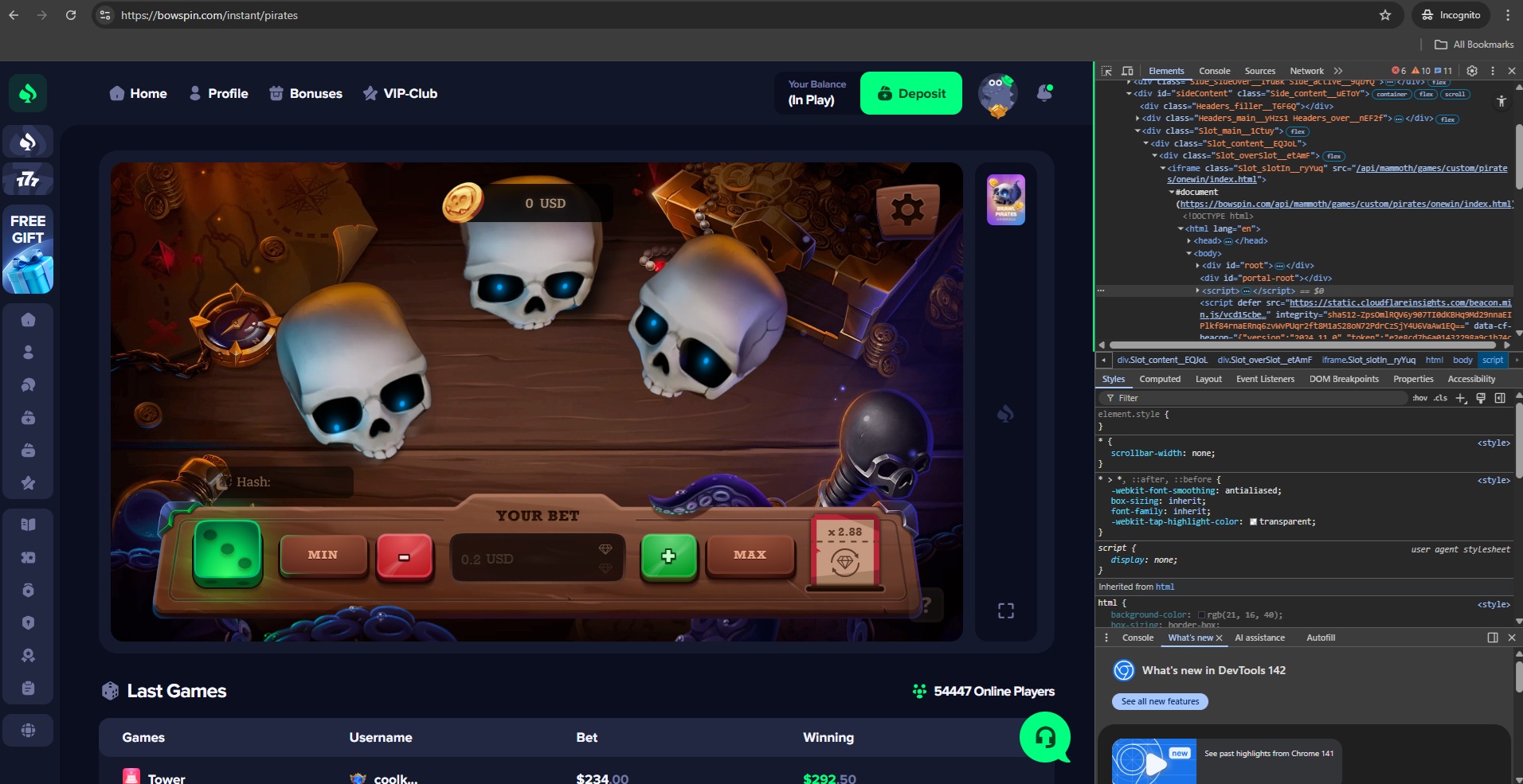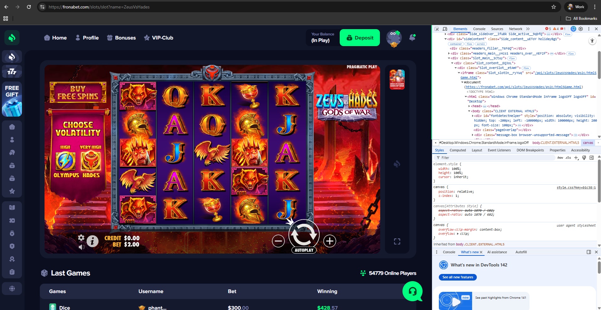 Our investigation revealed that this casino offers fake Pragmatic Play, Hacksaw Gaming, BGAMING, Evoplay, and 1win.