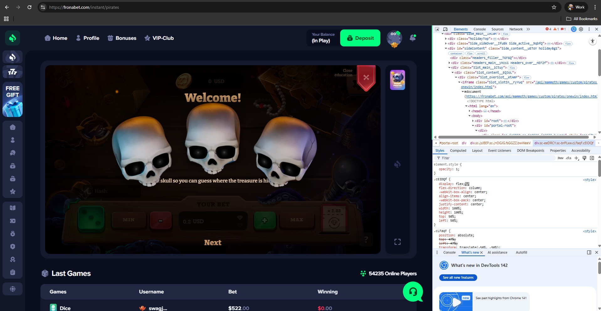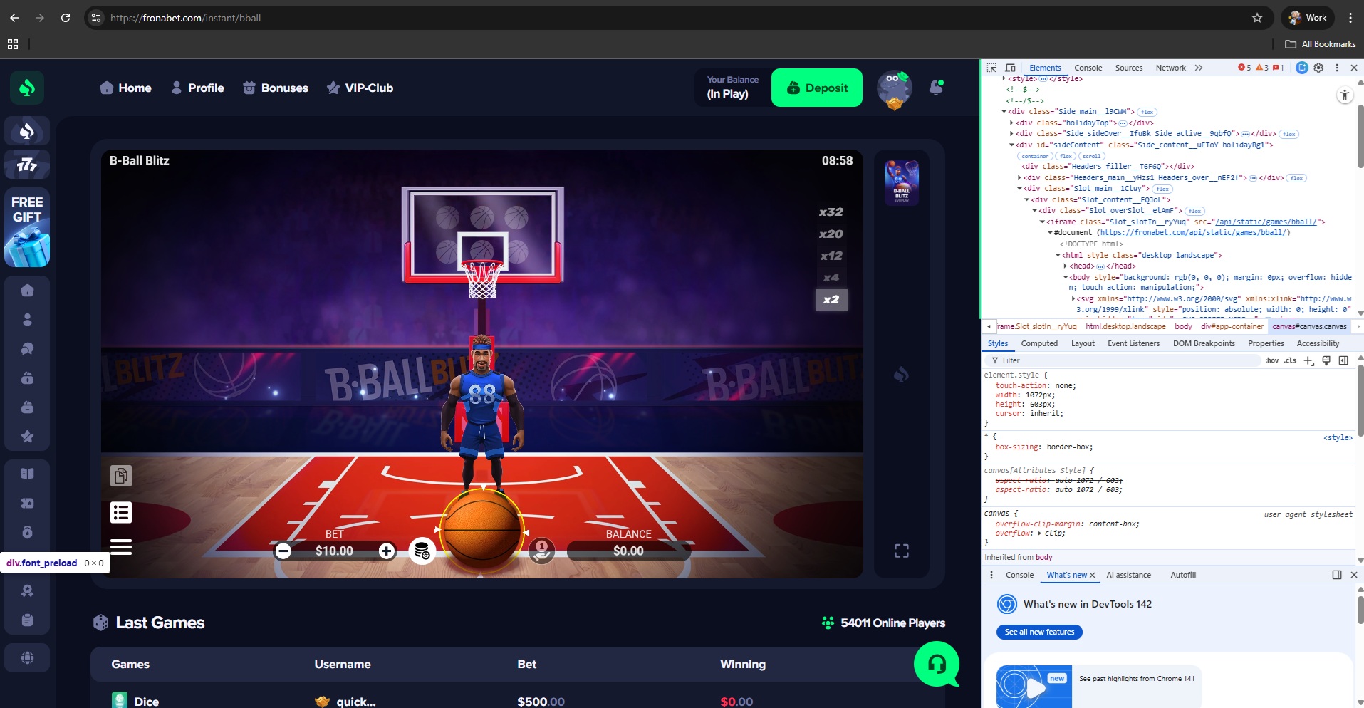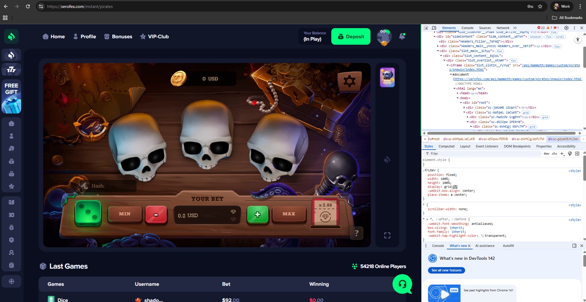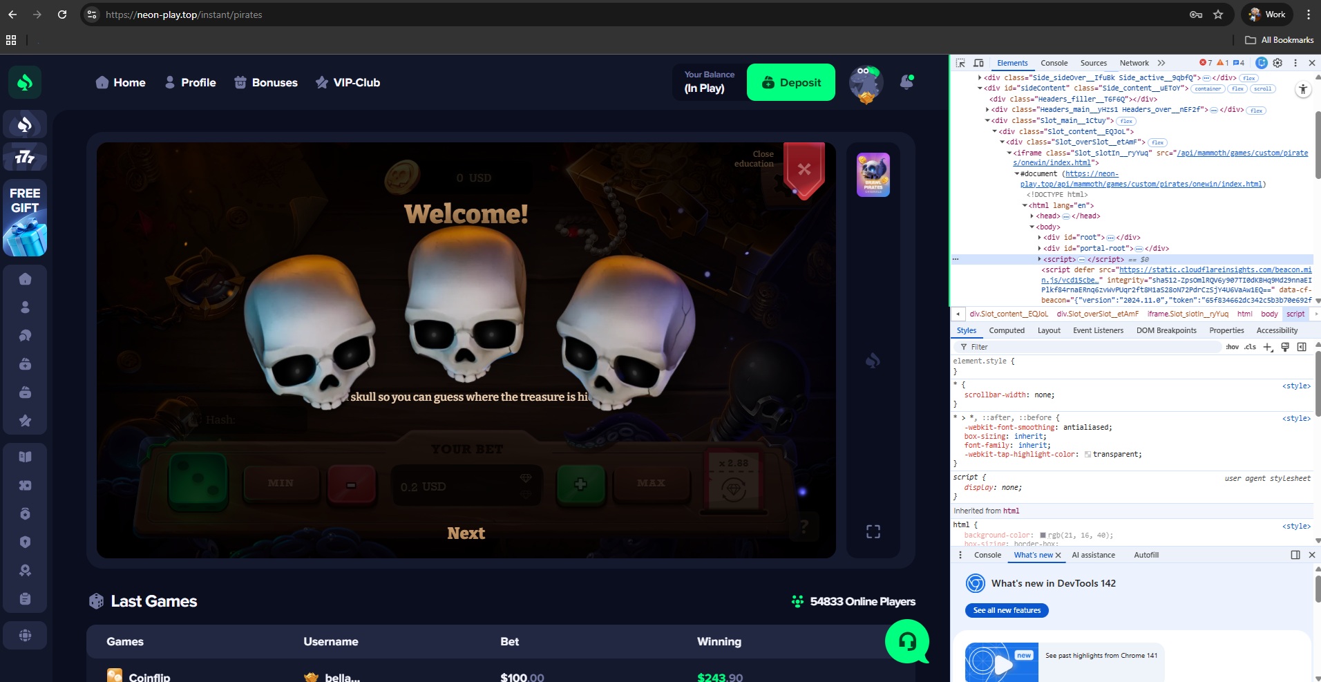 Our investigation revealed that this casino offers fake Pragmatic Play, Hacksaw Gaming, BGAMING, Evoplay, and 1win.