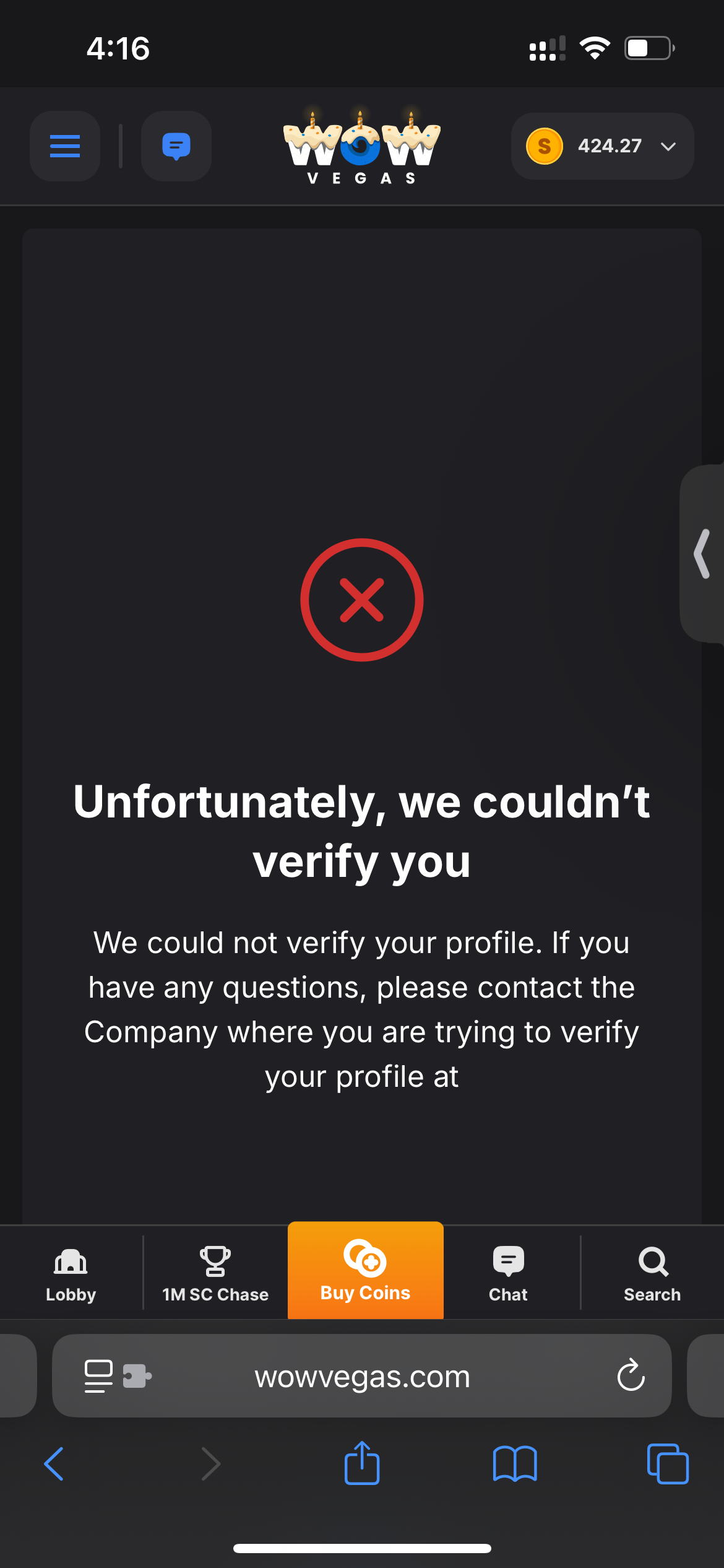 Yes I have a brand new account on Wow Vegas. Created 6 days ago. I won 427 sweeps coins. Then I tried to redeem. I had to complete verification. Well I failed verification because the address on my ID doesn't match the proof of residence document that I uploaded. The problem is live support has not responded to one message. Not even a hello. I've tried multiple times everyday. I was able to email support only to get a response from their AI bot. I was instructed to upload docs through email with a detailed explanation of why the conflicting addresses. Which I did. Still no response. Please help