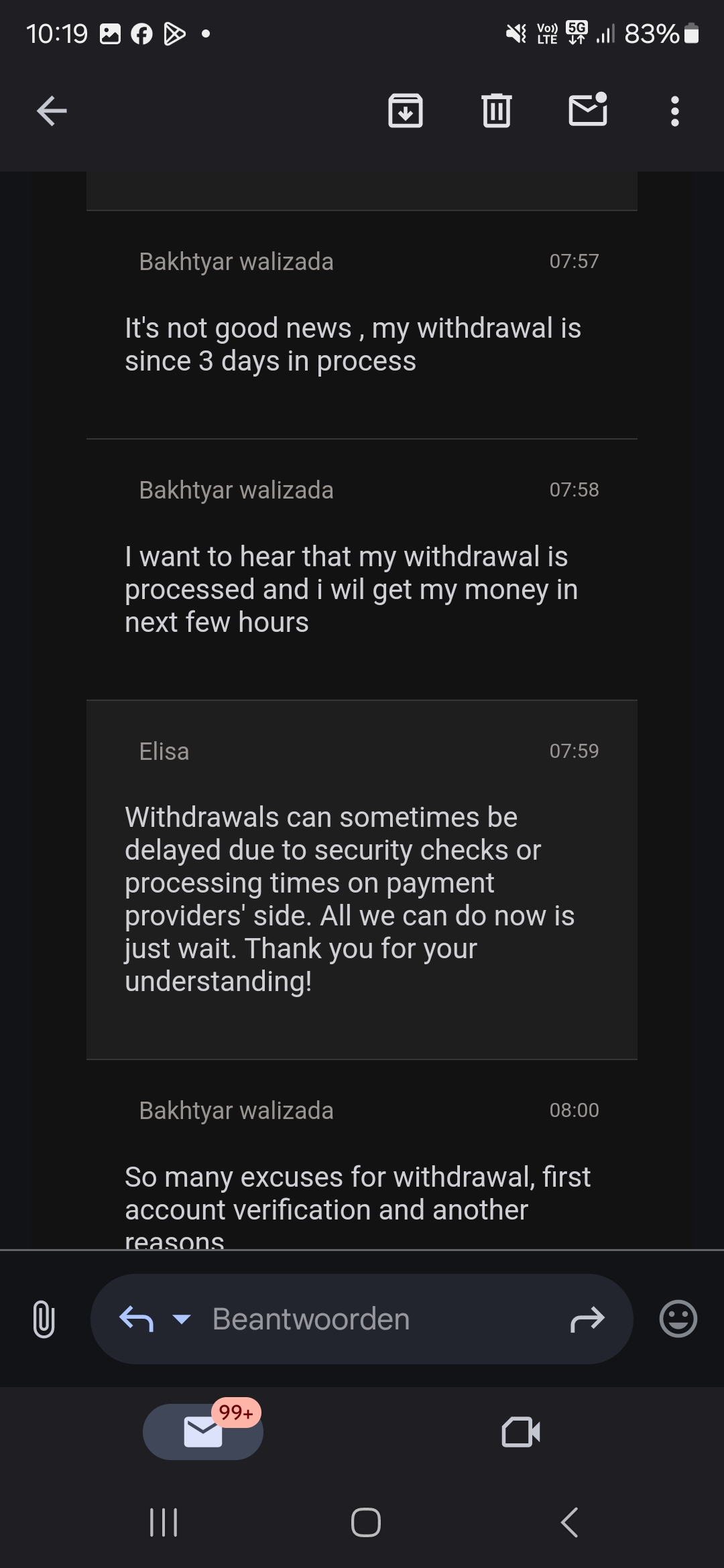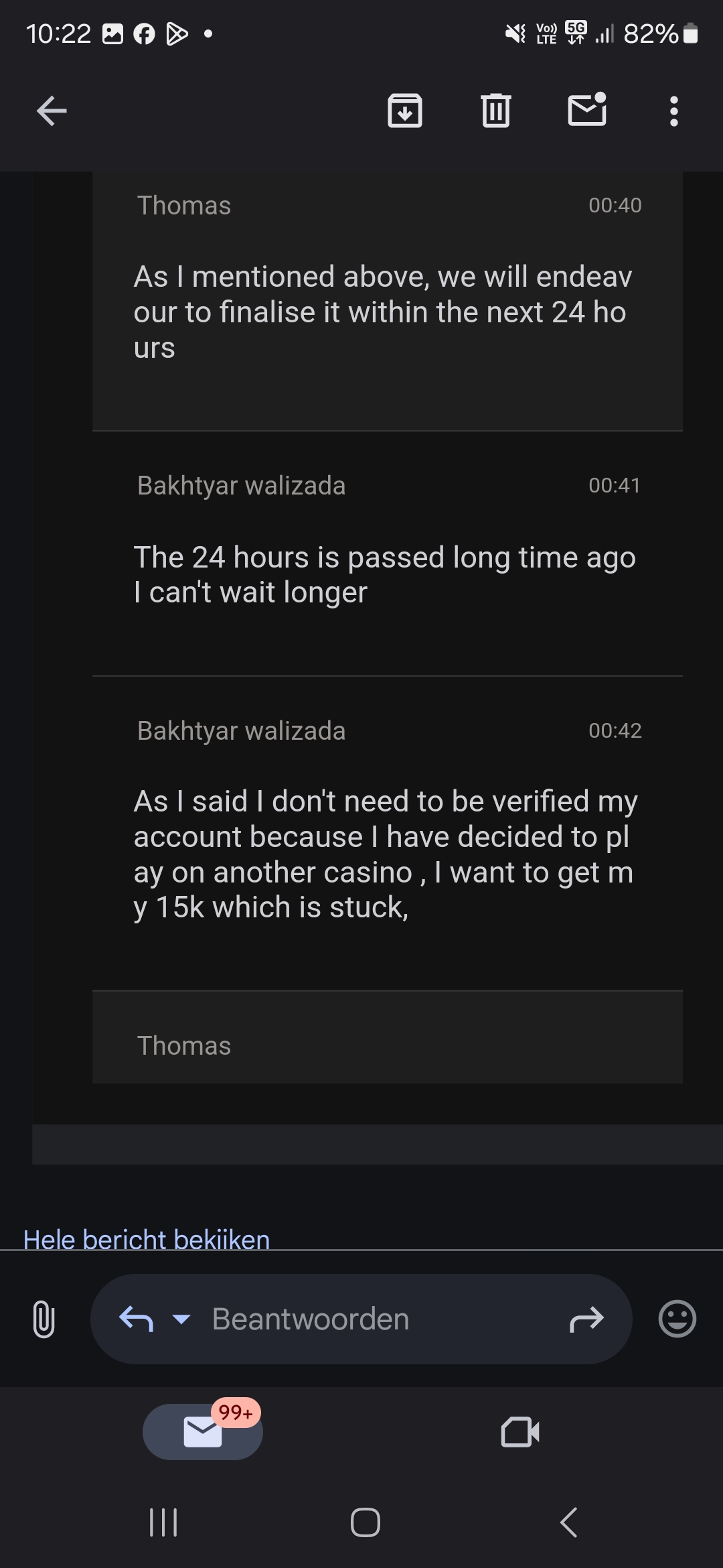 This casino scamad me by 15k withdrawal which I have requested 5 dayes ago , my account was fully verified, before deposits a larg money, I had no issues ,after playing few hours I did request 3 times withdrawal, they rejected, I asked them way my withdrawal is rejected, they told me your account is not fully verified , and we need 3 bank statements I send them , at that time I had around 100k EUR in my account, they delayed my withdrawal and verification when I lost my 100k they verified my account, I have proof of verification, I asked them is my account fully verified the live chat agent told yes your account is fully verified, I said them when my account is verified way I don't get my withdrawal , live chat agent told wait i am checking the information I said oke , when she is come bank to the chat my account just blocked without reason I was in shock they just blocked my account I lost my 100k because of delayed my withdrawal and now they have my 15k which dint want pay , this is really frustration and kind of fraud what they did , they must explain this