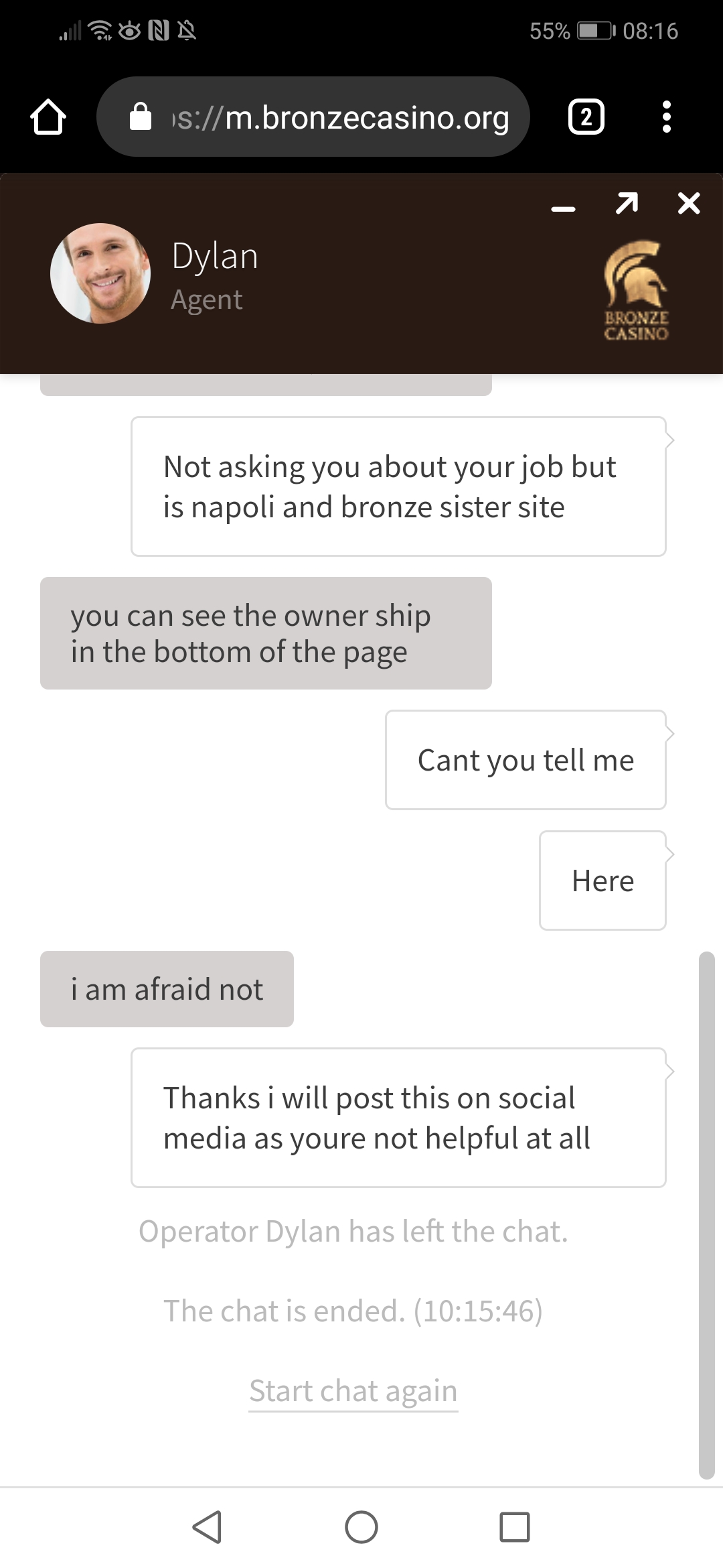 Nous leur avons également envoyé un e-mail concernant votre plainte chez Bronze Spins. Vous tenir au courant.