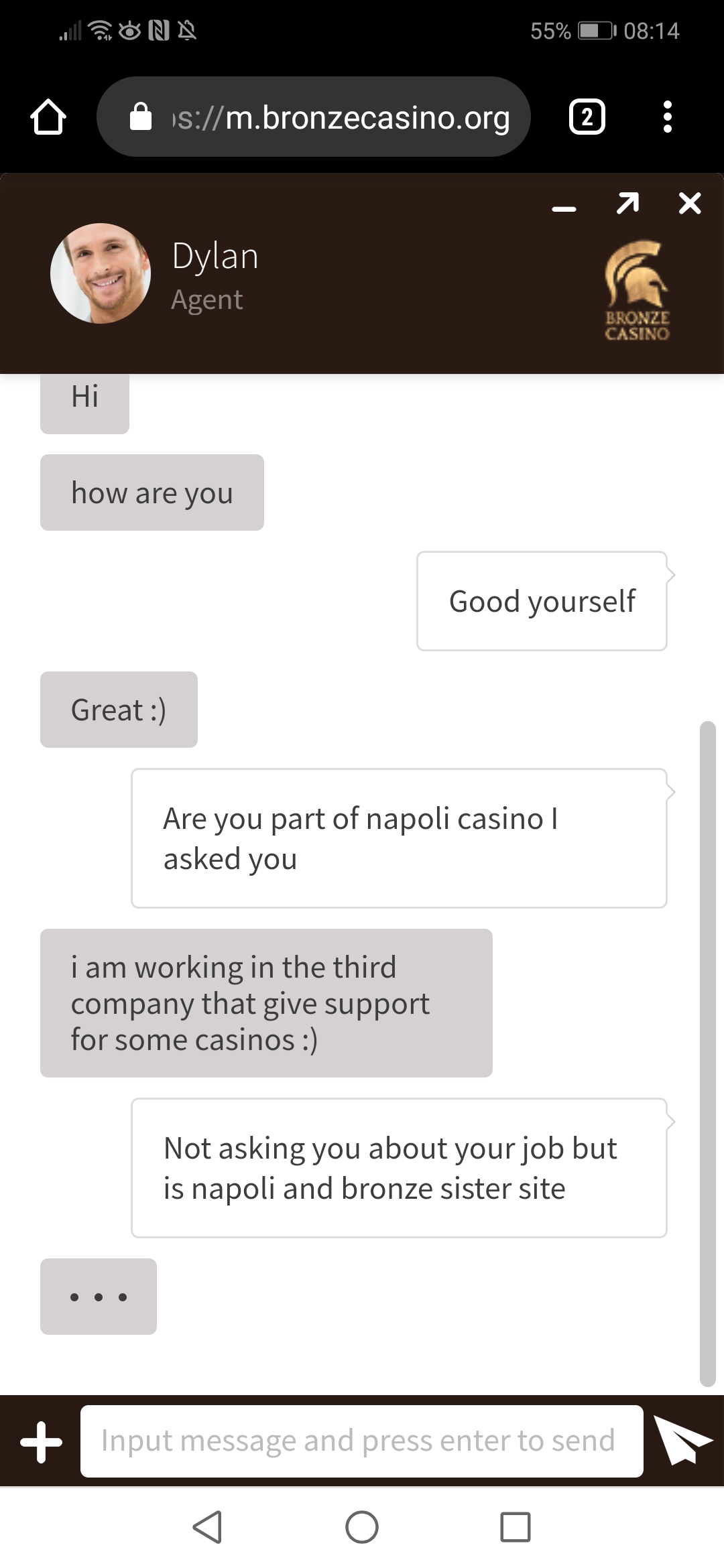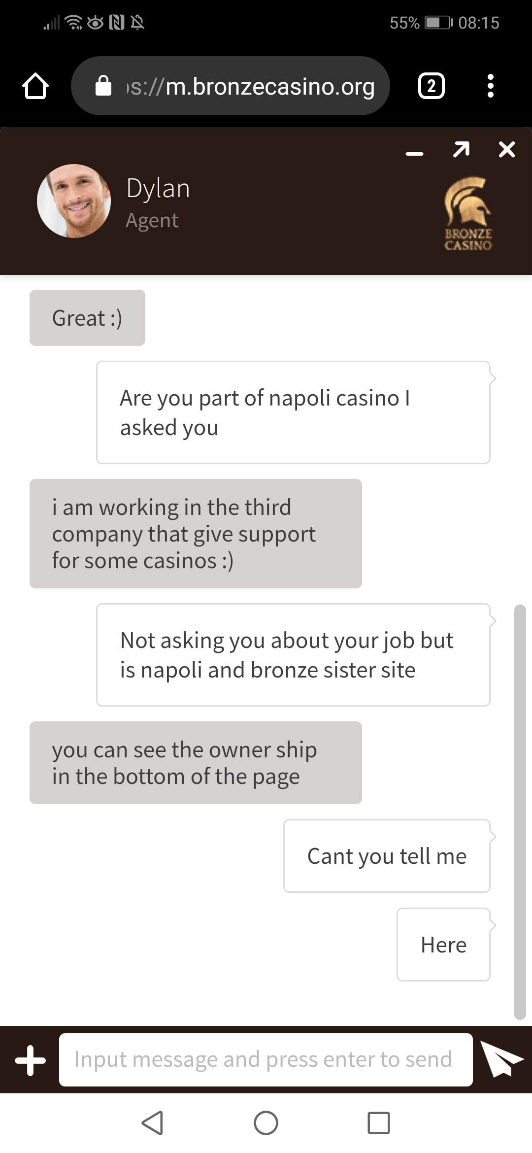 J'ai donc demandé la fermeture d'un compte avec les machines à sous classiques avec Napoli et Majesty et tous leurs sites devraient me restreindre l'ouverture d'un compte supplémentaire avec leur entreprise, mais j'ai quand même réussi à ouvrir un compte avec le casino Bronze. Veuillez regarder mon ancien message qui était le conseiller et veuillez voir comment ils vous servent réellement lorsque vous demandez de l'aide