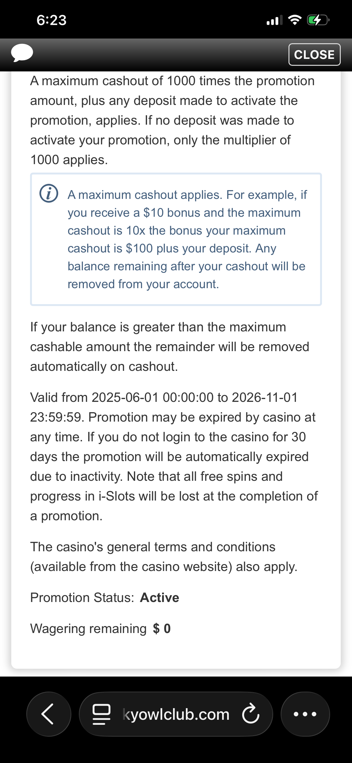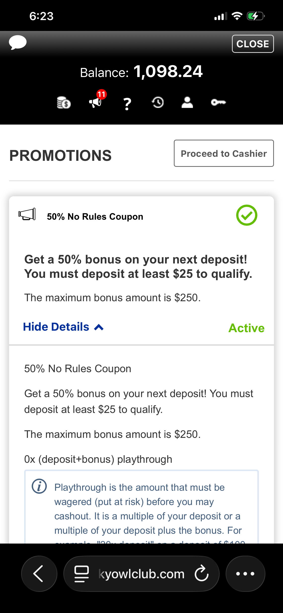 Il y a deux soirs, je jouais et je gagnais plutôt bien, alors j'ai contacté le support pour savoir à partir de quel montant je pouvais retirer mes gains. Mon solde était d'environ 1200. On m'a dit que c'était imminent, puis on m'a recontacté pour me dire que la procédure était lancée. J'ai donc laissé mon solde descendre à 1000 et j'ai essayé de retirer mes gains, mais ça n'a pas fonctionné. Je n'ai reçu aucune réponse du support. Le lendemain, j'ai réessayé, toujours impossible de retirer mes gains, mais j'ai finalement réussi à joindre quelqu'un du support. Il m'a dit qu'il me fallait 1025 pour retirer mes gains. J'ai donc continué à jouer et j'ai maintenant un solde de 1098. Je ne peux toujours pas retirer mes gains. J'ai essayé de contacter le support par chat et par e-mail, mais personne ne me répond 🤷♀️. Le coupon indique qu'il est toujours actif et qu'il ne reste plus de mise.