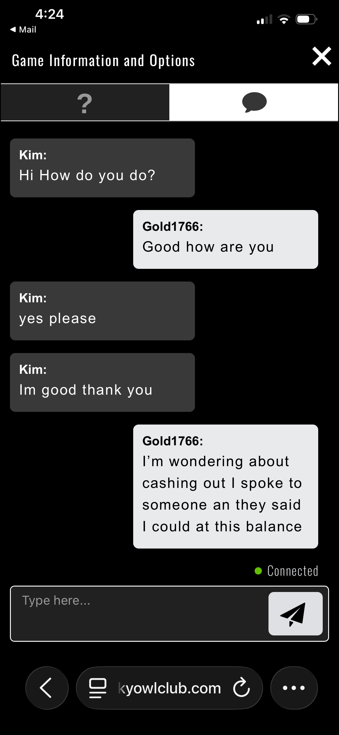 I was playing a couple nights ago and I was winning pretty good so I contacted support and asked what amount could I cash out at? I think my balance was around 1200, he said anytime now then he contacted me again and said he started the process for me. So I played it down to 1000 and tried cashing out it wasn’t working and I couldn’t get any response from support. The next day I tried again still couldn’t cash out but I did get someone at support he said I needed 1025 to cash out so I played and prayed and I now have a balance of 1098. I can’t cash out and I have been live chatting and emailed support and nobody answers me 🤷♀️