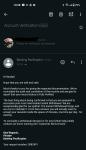 Après quelques jours d'attente pour que la vérification soit terminée, j'avais envoyé un e-mail à l'assistance pour lui demander s'ils pouvaient confirmer qu'ils avaient reçu ma vérification, car je n'avais reçu aucune sorte de confirmation qu'ils avaient reçu ma pièce d'identité/selfie... Ce qui a ensuite conduit à la même réponse générique copier-coller qu'ils m'ont envoyée presque chaque fois que je réponds à l'un de leurs e-mails... qui est la suivante :