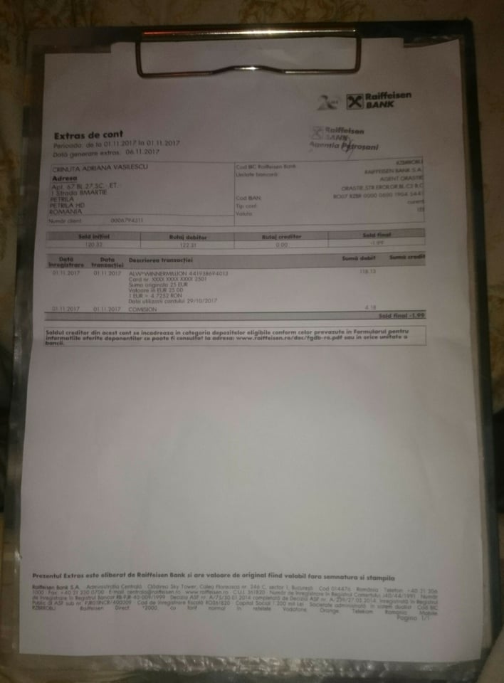 Here is proof of depozit fabrice look 25 euros and beliveme i not riceve 1 euros from your casino