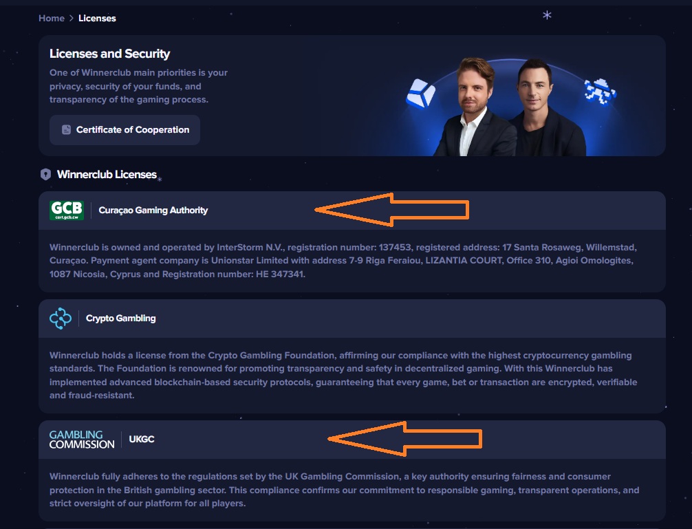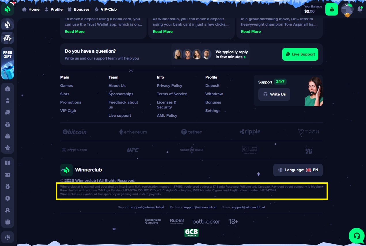 ➡️ Conclusion: Winnerclub.at Casino is not licensed by either the Curaçao Gaming Authority or the UK Gambling Commission and provides inconsistent ownership disclosures.