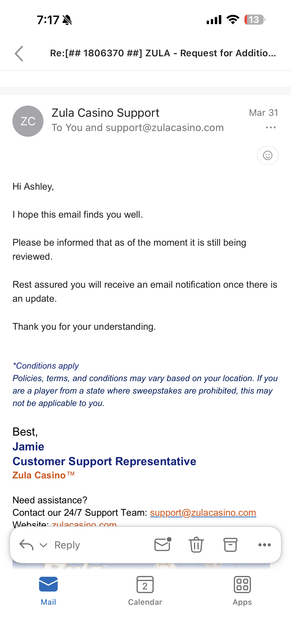 Casino will not complete identity verification, it has been over 2 weeks and they just respond that I’m in the queue to be verified .