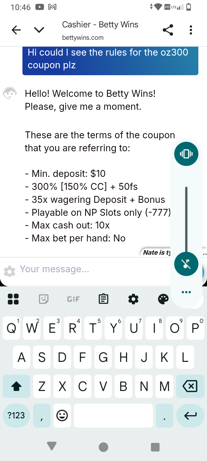 I just want to complain here about betty wins live chat, honestly its just some guy named alex Smith. Everyone else they're really nice, helpful and informational. For the last couple days I've been wanting to deposit with my debit card that I always use. I get pop ups in a red color saying "CC not avaliable at the moment " i go see whats the problem and they tell me try again in 24 hrs, I did same thing happened. So I've been using bitcoin lightning. Another day passed by and I tried my debit card again, same pop comes up. I tried another card and it went through once now I have the same problem. Already called the bank and its not them. So I tried live chat and they told me wait 24 hrs again or use bitcoin or litecoin. I told them I already did try waiting, and nothing was fixed, can you just tell me why its not accepting my debit card. I got no answer and the chat closed down. I dont mind using bitcoin especially when I use a no rules bonus, but for me its more convenient to use my debit card. why can't you tell me what's the problem. I really like playing at betty wins so I tried to fix the problem but they've been closing the chats on me so I just go some where else. Can you help me with this issue im having.