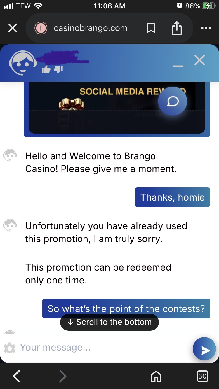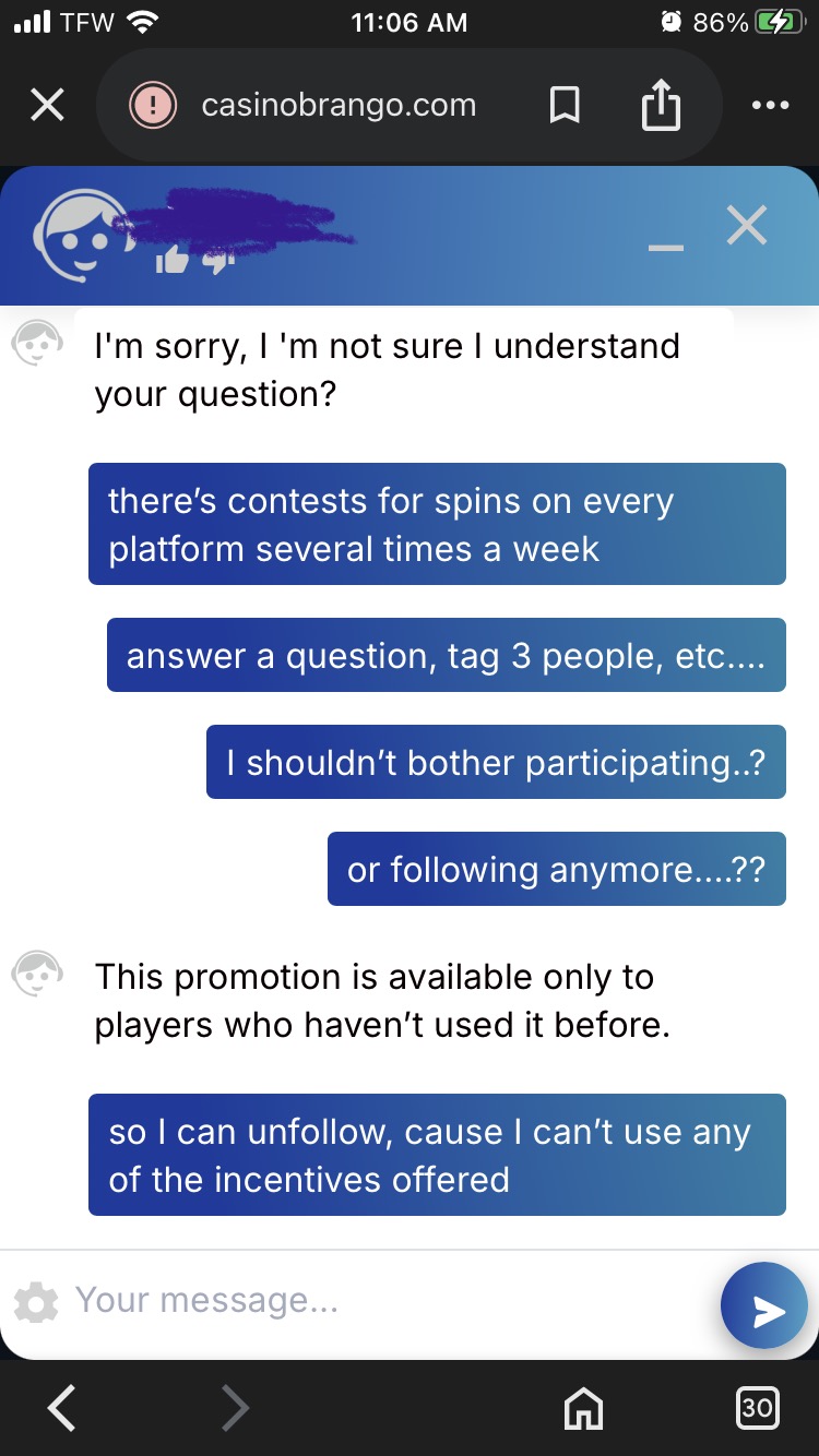 And I've won the social media contests, but I'm told I can't redeem the spins. I guess I don't understand why they put all these contests up (every casino/every platform) if you can't even redeem the rewards..?attached is my coupon page, rewards page, and support chat