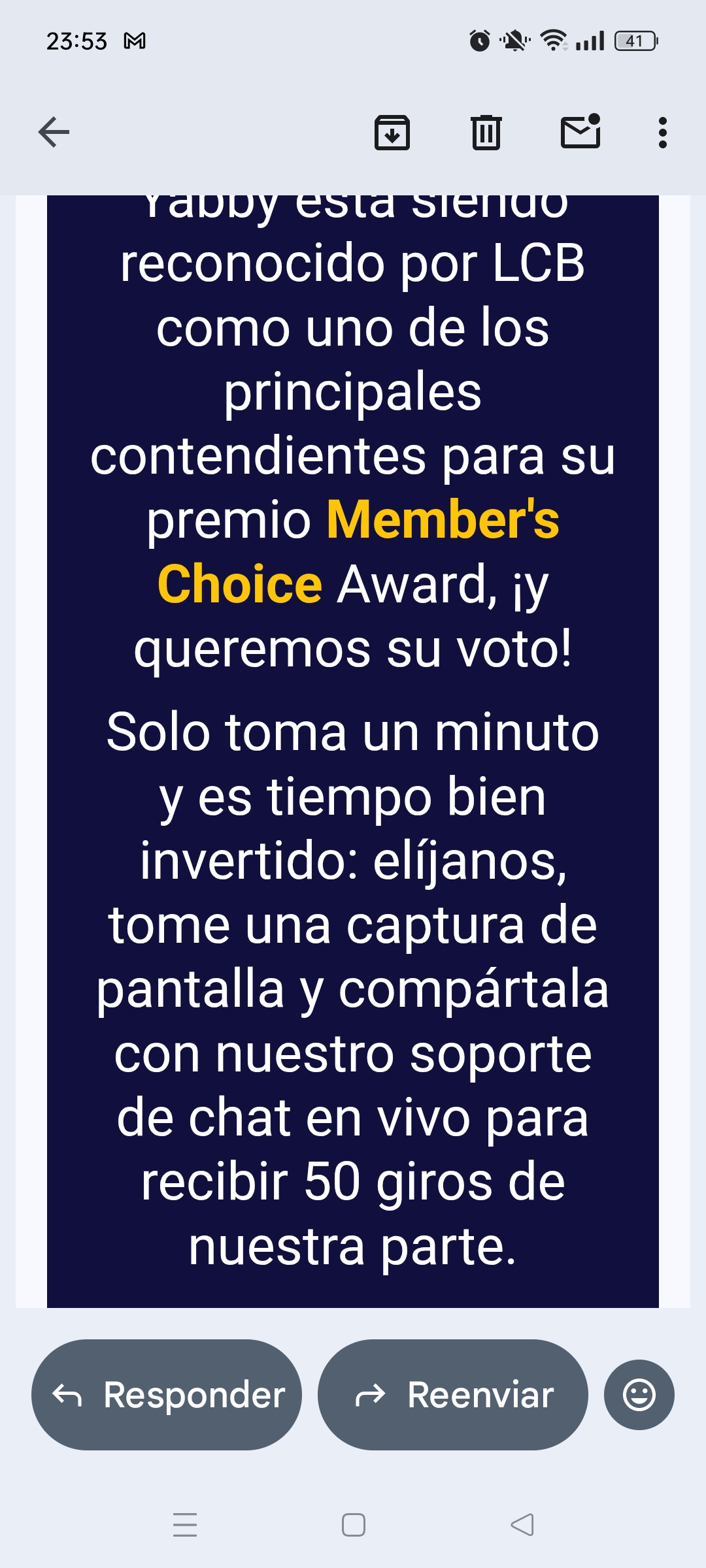 J'avais trois comptes, ils en ont désactivé deux, conformément au règlement. Je l'ignorais à l'époque. Maintenant, avec le vote pour les sites de casino, Yabby a l'audace de m'appâter en me promettant 20 tours gratuits. J'ai une capture d'écran de la confirmation de mon vote. Lorsque notre service client a voulu une autre capture d'écran, ils ont demandé à ce que l'e-mail de confirmation provienne de l'un de mes comptes désactivés depuis plus d'un mois. Ils prétendent maintenant me donner mes tours gratuits ! Je les signale ici et là, ainsi qu'à la Commission des jeux.