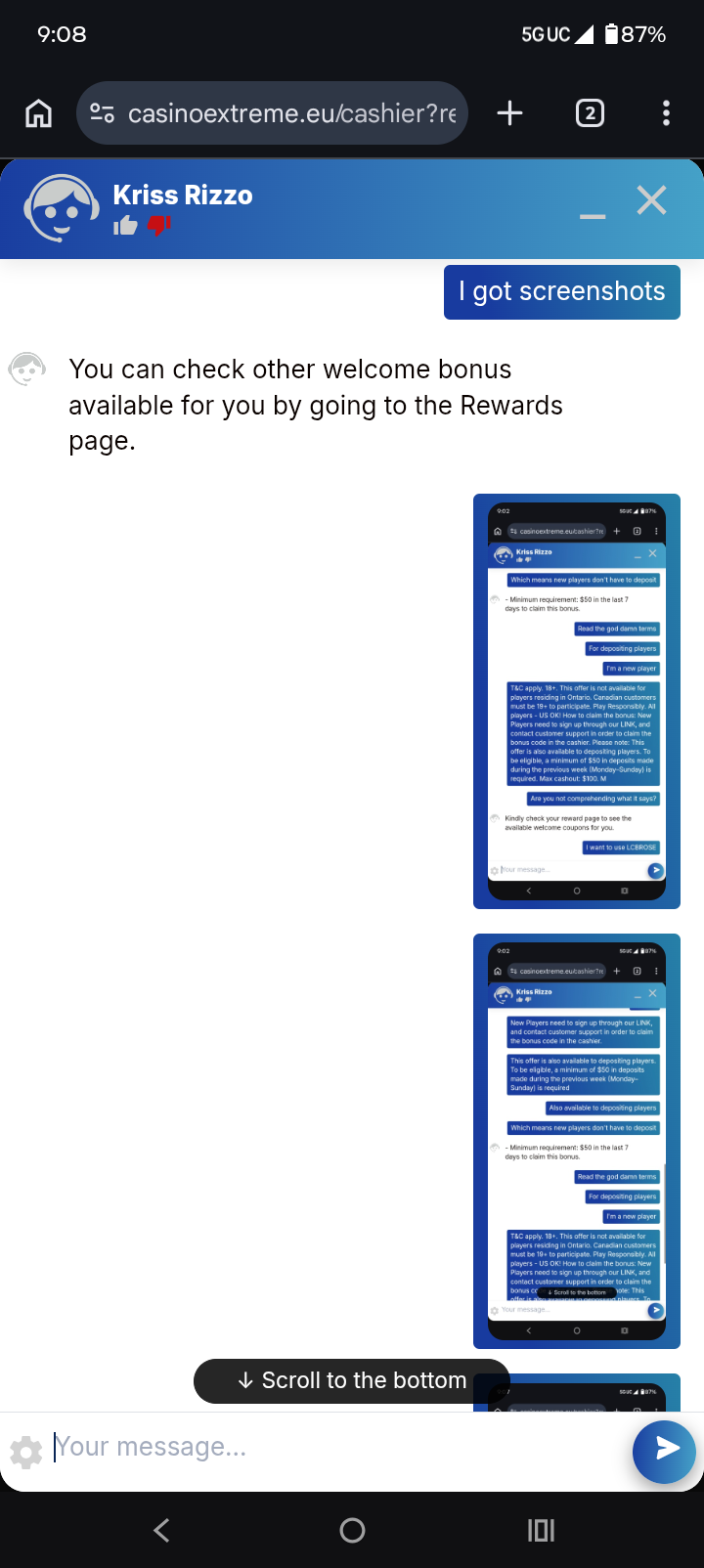 Veuillez également nous envoyer votre nom d'utilisateur de casino par message privé afin que nous puissions contacter le représentant du casino pour vérifier votre compte.