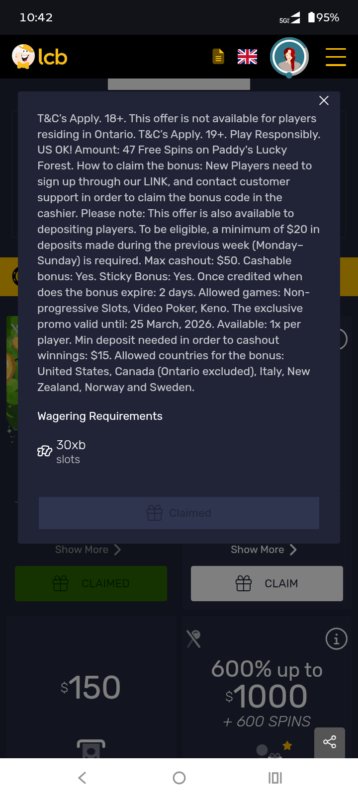 From what we understood, you signed up through our link on the forum, but the bonus was not credited, and then you created another account in order to receive the bonus. Unfortunately, if that is the case, it would be considered a violation of the casino’s terms, as creating multiple accounts is generally not allowed, even if the first one was not used.