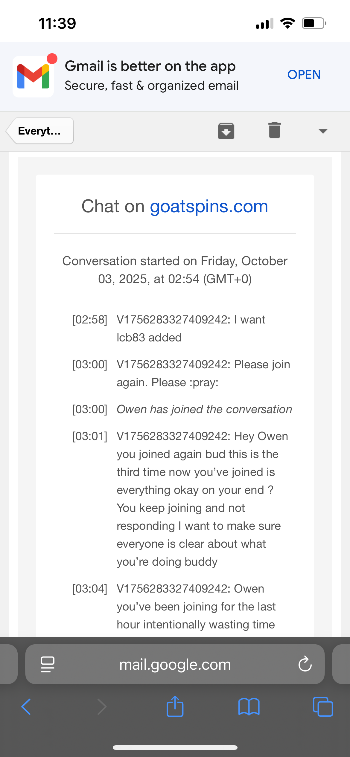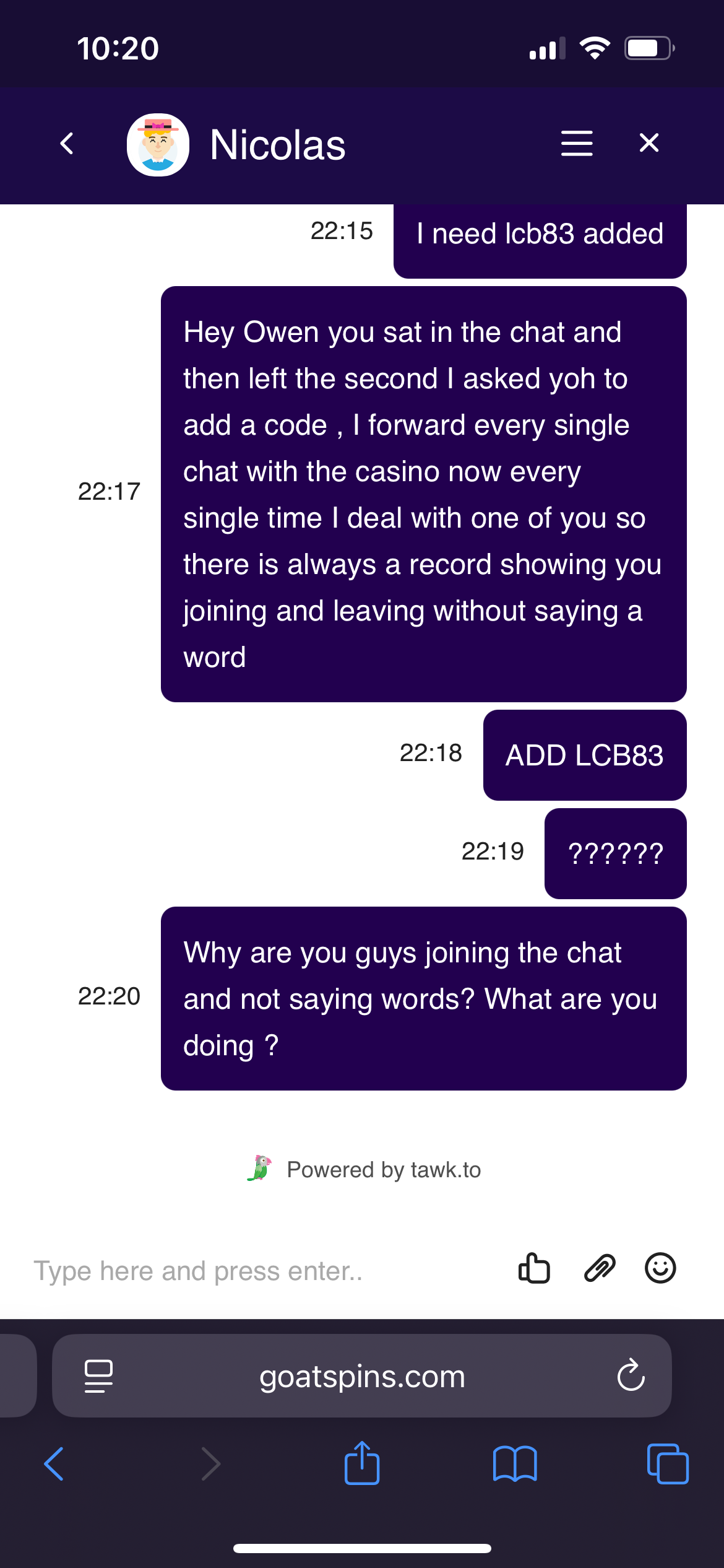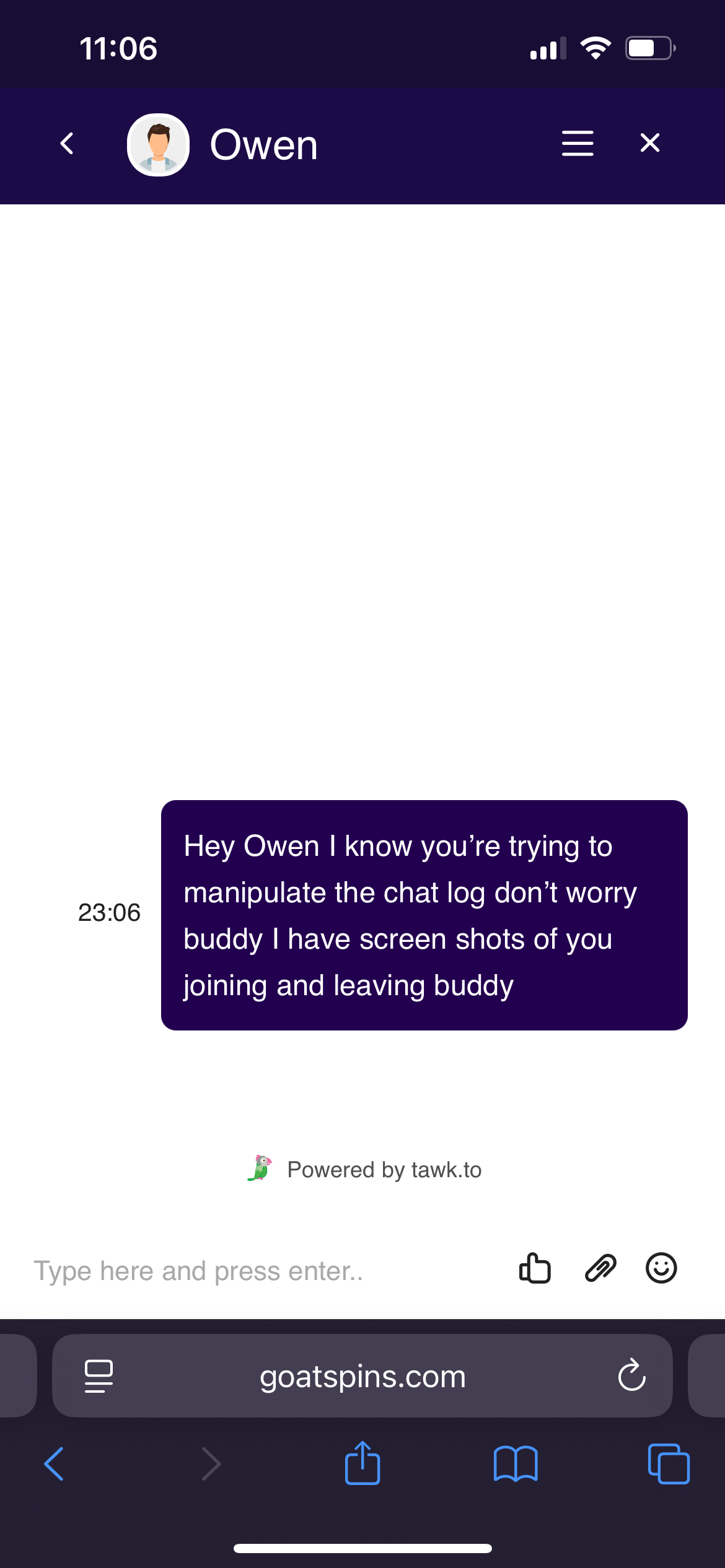 Yes I agree goatspins is a sham. Fake madeup at the last moment, no where to be found terms and conditions. Definitely playing elsewhere...