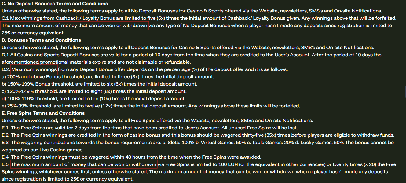 We would like to inform you that your withdrawal has been cancelled by the payments department and the amount of €2,996.48 has been removed from your balance due to the breach of the following Terms & Conditions: 58.3.3